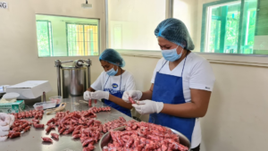 Also, during the physical monitoring, KoopNaman MPC was also conducting a skills training for meat processing to seven (7) participants/potential entrepreneurs using SSF machines and equipment. They were learning to make Lucban longganisa and skinless longganisa. This activity is a regular undertaking of KoopNaman MPC as their corporate social responsibility to the community.