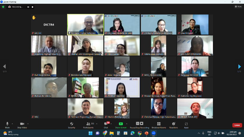 Digital marketing specialist and DICT scholar, Mr. Raphael Niño Alcantara served as the resource speaker of the session discussing tips on what to do and what to avoid in doing digital marketing. He stressed the importance of getting the right target market, uniqueness in content creation, product tracking, customer relationship, mobile optimization, and mistakes to avoid in creating a user-friendly website and keeping it updated. Then, Mr. Alcantara also stated the need to take professional help by introducing some DICT programs. Finally, he advised the attendees to be mindful online and be aware of the widespread scams and unsafe links lurking thru text messages and online.