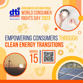 NORTHERN MINDANAO — Department of Trade and Industry (DTI) Region 10 celebrates World Consumer Rights Day (WCRD) 2023 with activities aimed to encourage consumers to transition to clean energy by making informed choices and taking actions that reduce energy consumption and promote renewable energy.