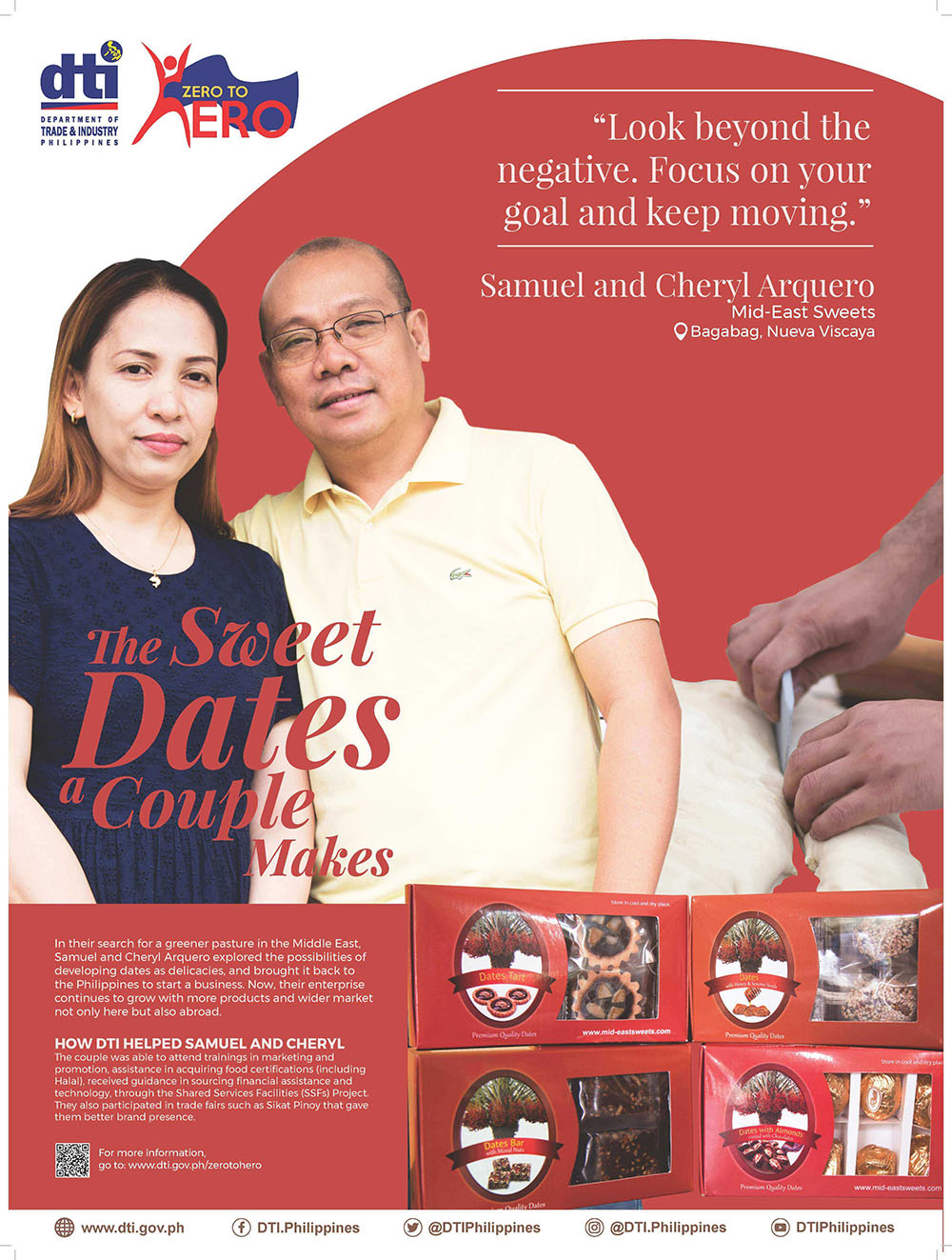 With the help of DTI, they rebranded their products, passed their nutrition verification process, and got Mid-East Sweets halal-certified. Thanks to these efforts, their products are now ready for export to the world market and they target Malaysia as their next market.